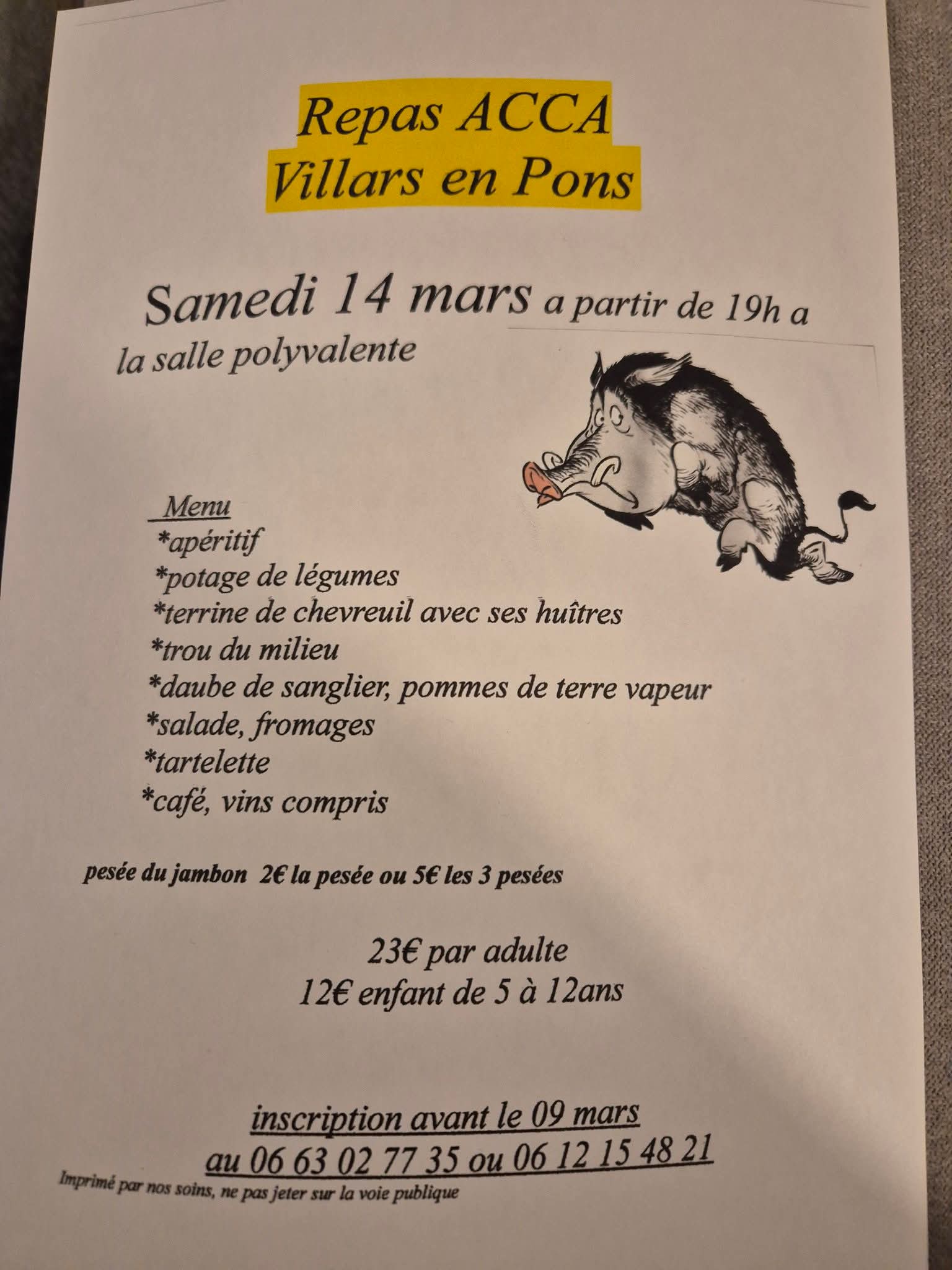 L'ACCa de Villars organise son traditionnel repas annuel